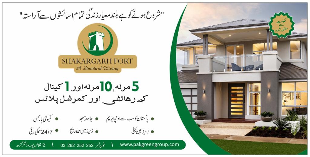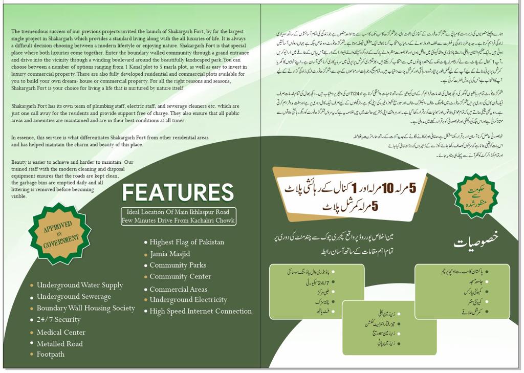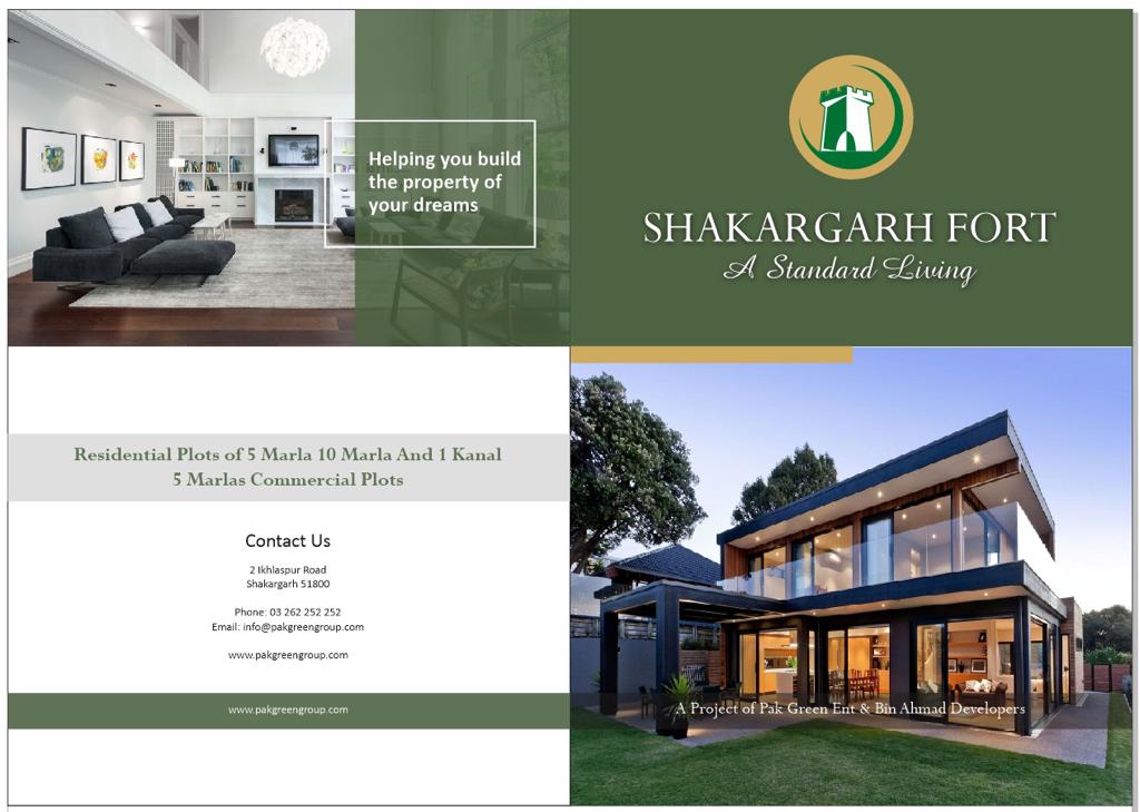 A Standard Living UPGRADE YOUR LIFESTYLE THE ONLY WALLED SOCIETY IN SHAKARGARH 5 & 10 MARLA RESIDENTIAL PLOTS 1 KANAL & 5 MARLAS The tremendous success of our previous projects invited the launch of Shakargarh Fort, by far the largest single project in Shakargarh which provides a standard living along with all luxuries of life.